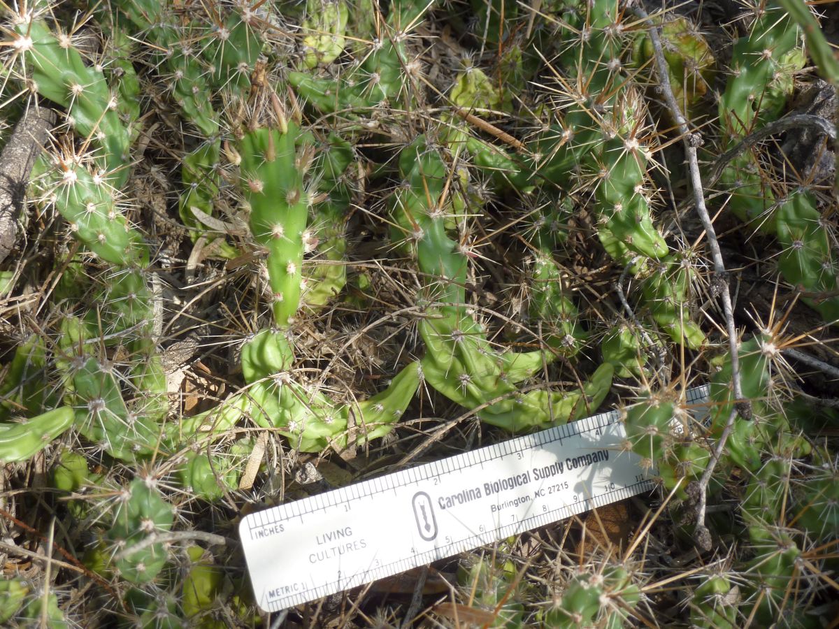 Grusonia schottii is a dog cholla that forms small plants 15 cm across to very large plants (300 cm). However, at 5-12 cm tall, the plants are relatively short.