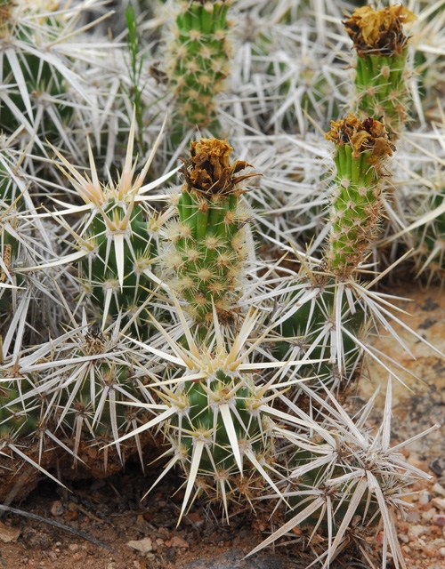Grusonia clavata is a dog cholla restricted to NM in the United States according to the Flora of North America online, but it may occur in far eastern AZ near Lupton. It is plentiful in northern Mexico.