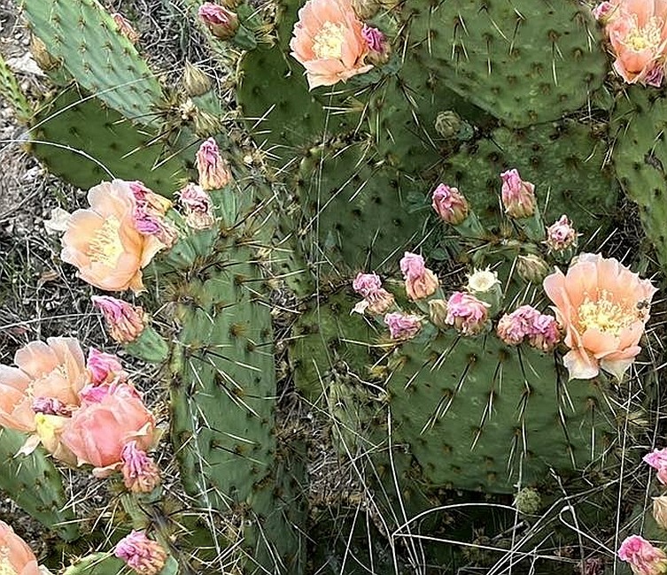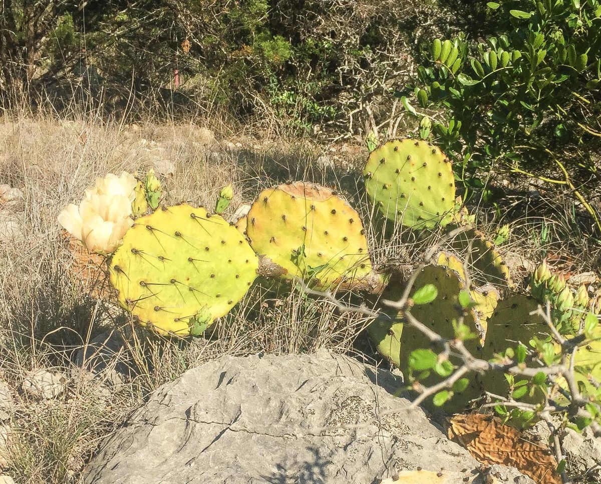 O. phaeacantha — Often broader-padded and less stiff overall; pad shape and spine color/strength help separate it from atrispina.