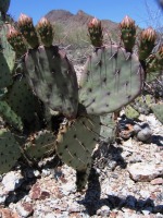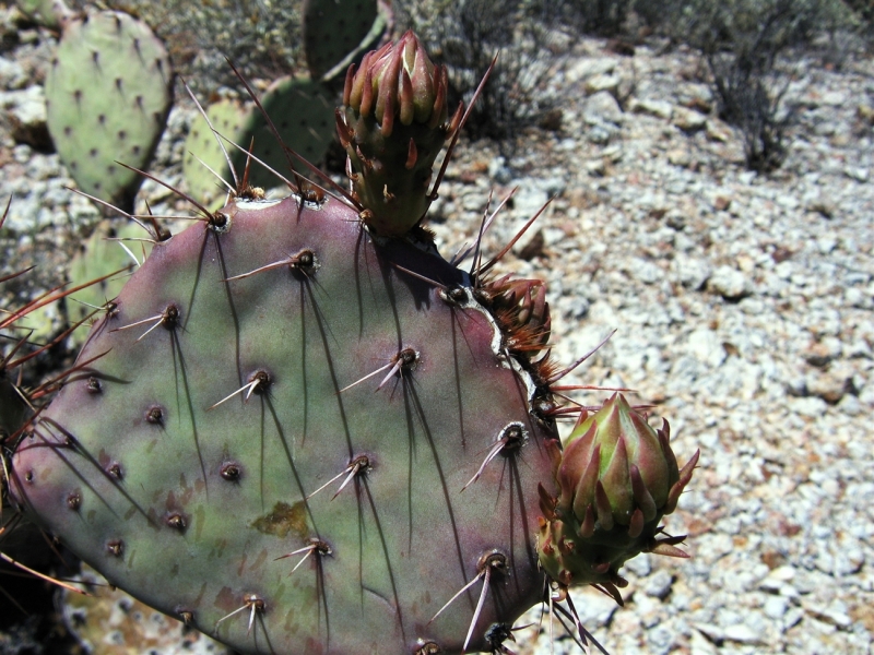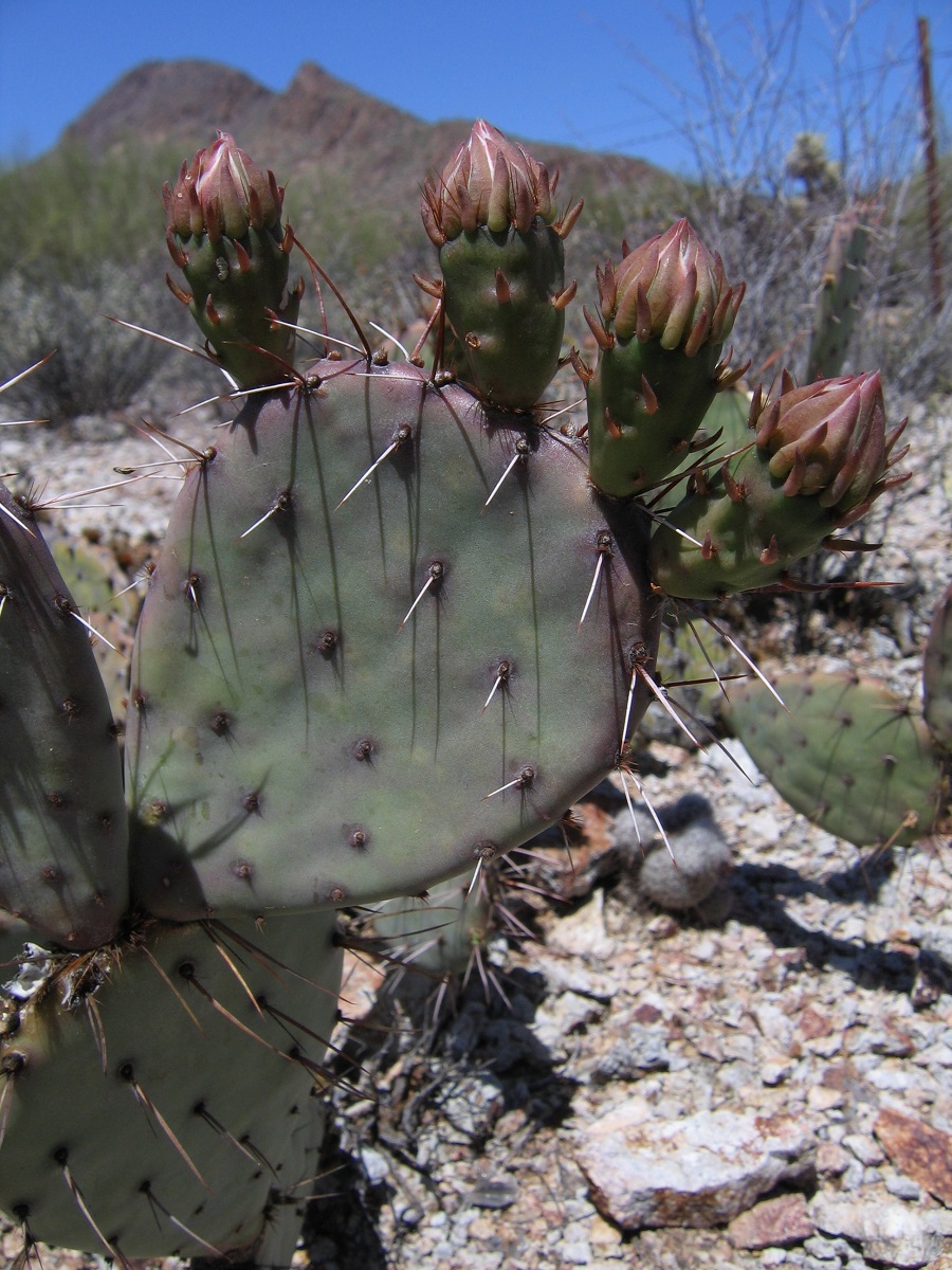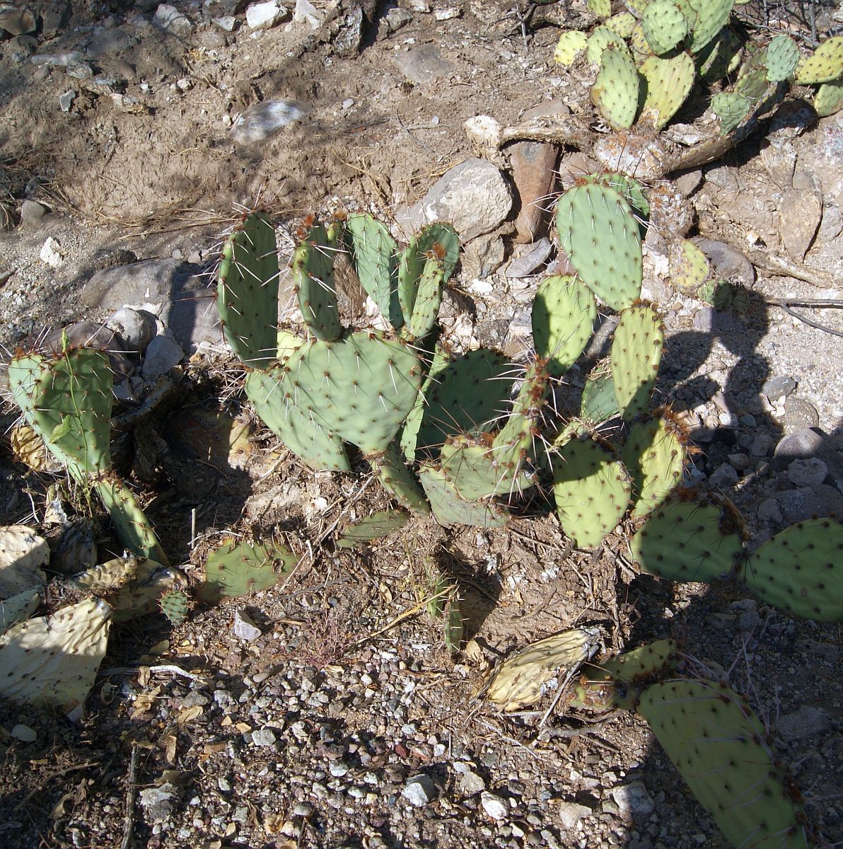 A small, low, spreading prickly-pear recognized from the greater Tucson area of the Sonoran Desert. This treatment regards it as distinct based on its consistently modest habit and expression of small to medium, subcircular to broadly obovate joints; the name has received limited attention in modern literature and has been confused with nearby taxa.