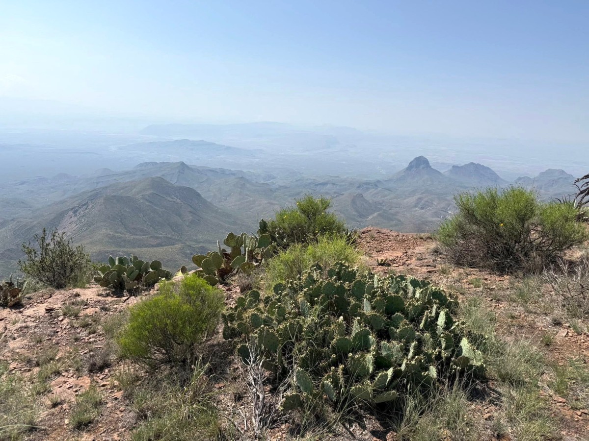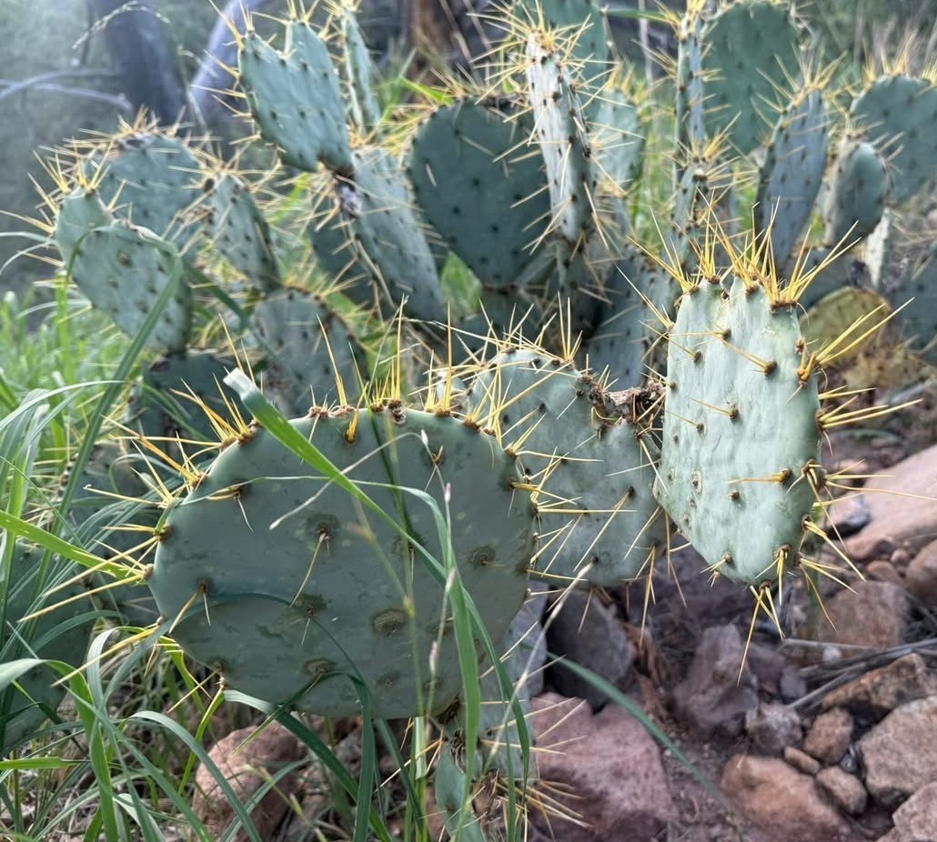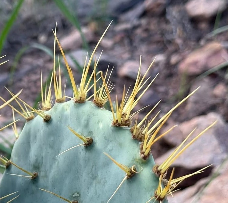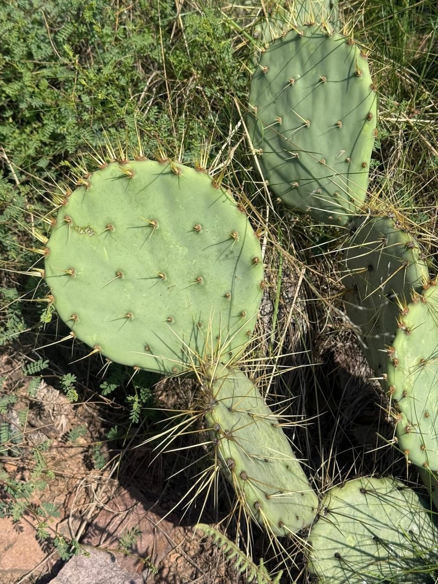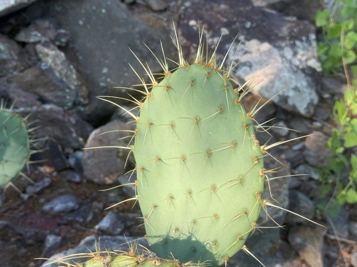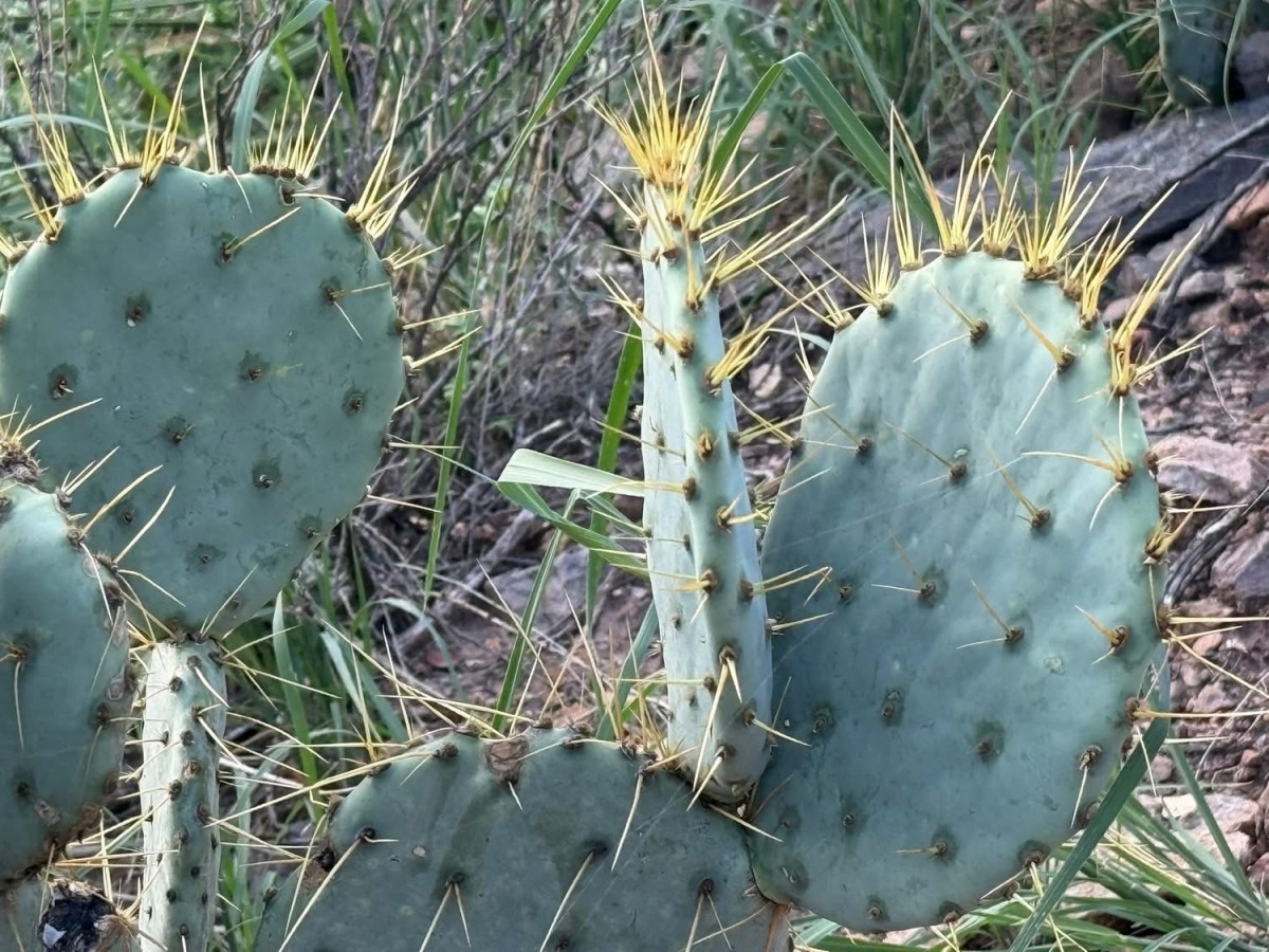 Opuntia chisosensis is a high-elevation prickly-pear native to the Big Bend region of Texas and adjacent northern Coahuila, Mexico. It grows mostly in open woodland—oak, juniper, and pinyon—typically above about 5,500 ft (≈1,650 m), with occasional plants on nearby grassy slopes. Once treated as a variety of O. lindheimeri, it is now recognized as distinct for its compact, upright shrubs with bluish to gray-green pads, bright yellow to yellow-buff flowers, and conspicuously small fruits.