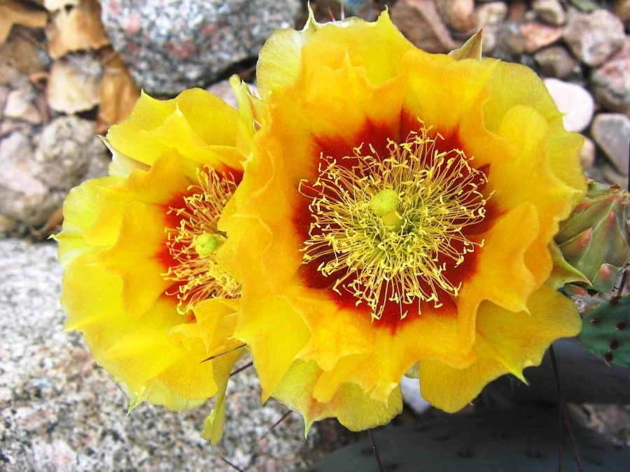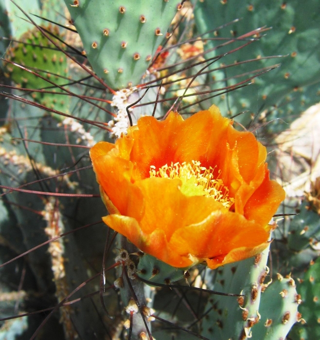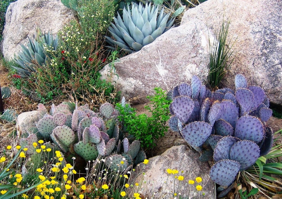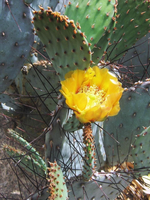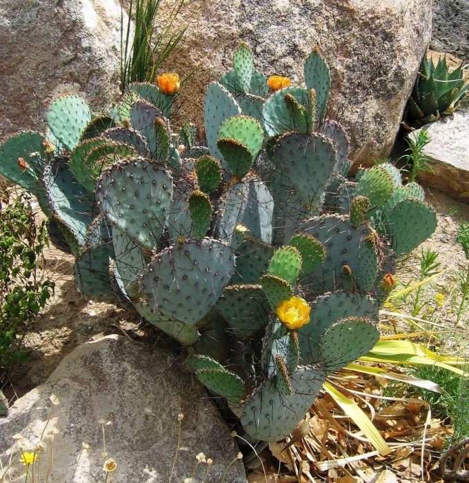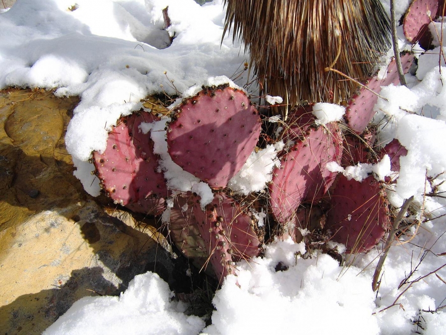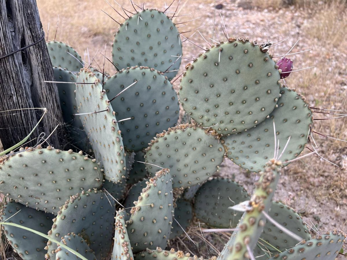 Opuntia macrocentra is a much-grown and much-enjoyed prickly pear cactus found in western gardens. It is related to O. azurea. The flowers are attractive and the pads are often bluish or purplish.