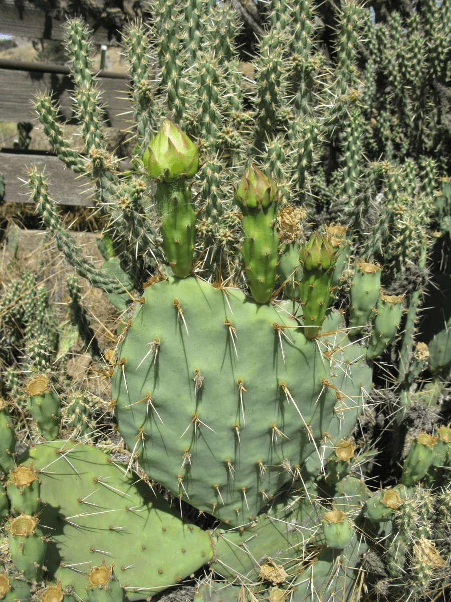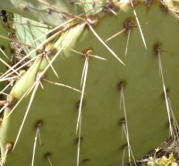 Opuntia mojavensis is an enigmatic prickly pear cactus. The only historical drawing of this cactus shows 2 spine clusters and an immature or sterile fruit. The lectotype for this prickly pear also has limited material. Some treatments dismiss it for lack of a useful original description.