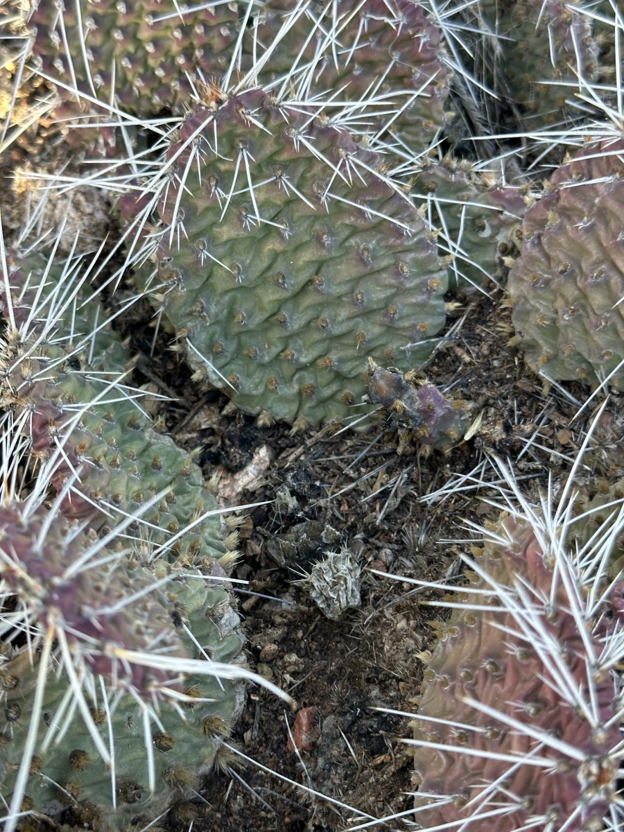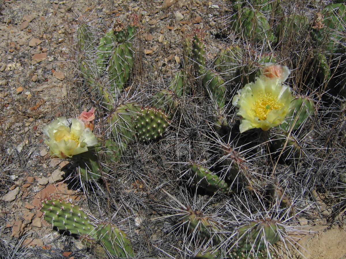 Opuntia polyacantha is a widespread species found from Canada and the northern Midwest to California and down the backside of the Sierra Nevada mountains into Mexico. Some plants don’t fit into the varieties we describe and are worthy of more study. This prickly pear cactus is the most widespread Opuntia in the North America.